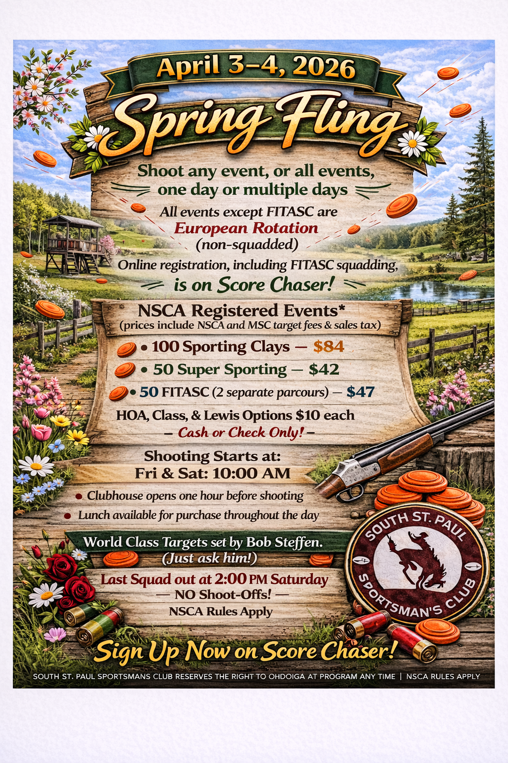 Scorechaser.com for individual shoot registration and post-event scoring.